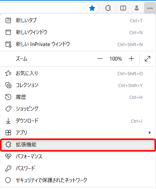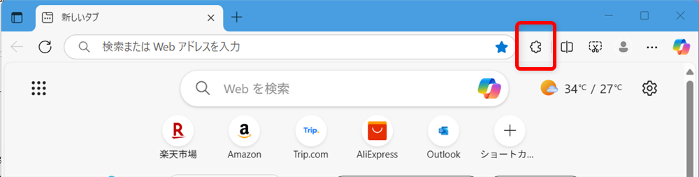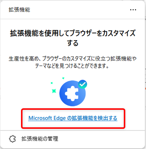 青い文字の「Microsoft Edgeの拡張機能を検出する」をクリックします。