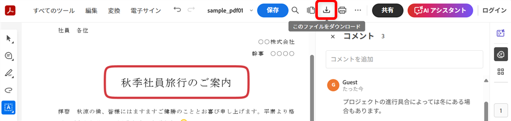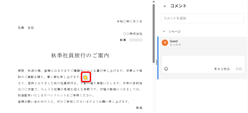 こちらでは、PDFにコメントを追加する方法をご紹介します。