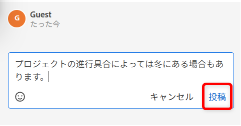 右側にコメントを入力する欄が表示されるので、メッセージを入力します。