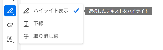 - ハイライト表示 … 重要な文章にマーカーのように色を付けられます