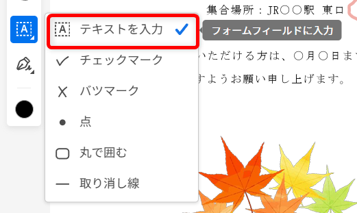 こちらでは、PDFにテキストを入力する方法をご紹介します。