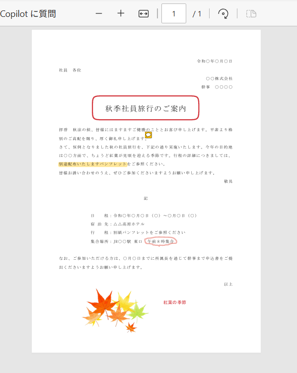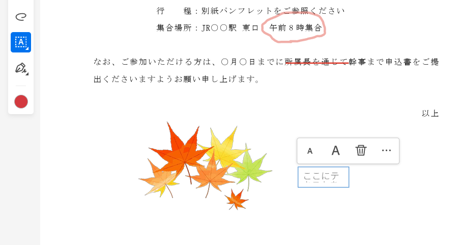 こちらでは、PDFの一部を丸で囲む方法をご紹介します。