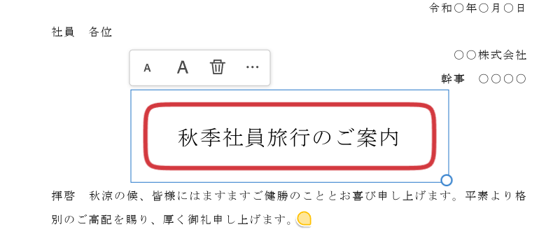 - 取り消し線 … 削除予定の文に線を引いて示すことができます