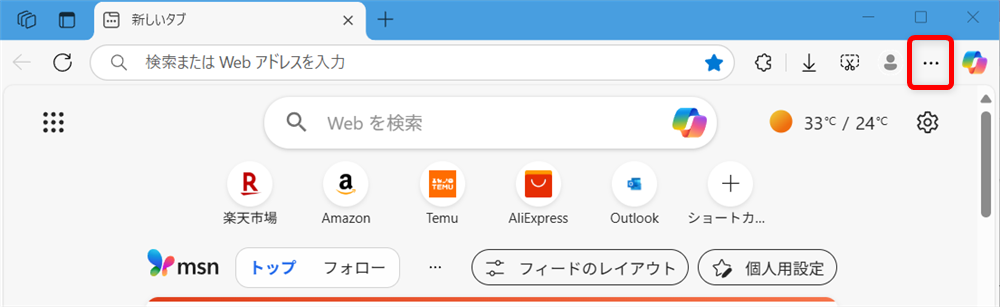 【Microsoft Edgeの拡張機能】翻訳を簡単に!Simple Translateの使い方と設定方法画面右上にある「…」(三点リーダー)を選択します。