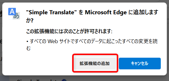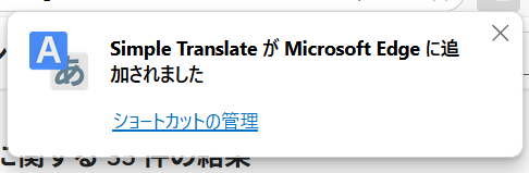 「Simple TranslateがMicrosoft Edgeに追加されました」という画面が表示されます。