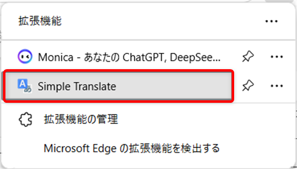 【Microsoft Edgeの拡張機能】翻訳を簡単に!Simple Translateの使い方と設定方法Simple Translateを選択します。