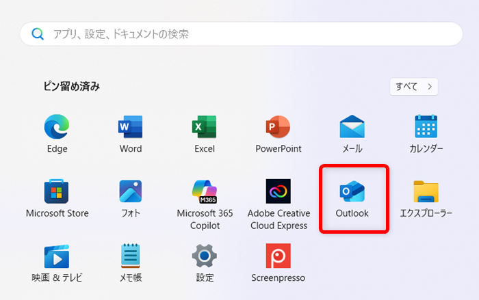 「ピン留め済み」の中から「Outlook(new)」を選択します。