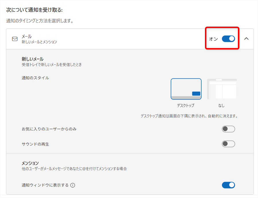 Outlook for Windowsの通知設定を変更する方法