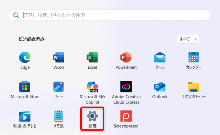 「ピン留め済み」の中から「設定」を選択します。
