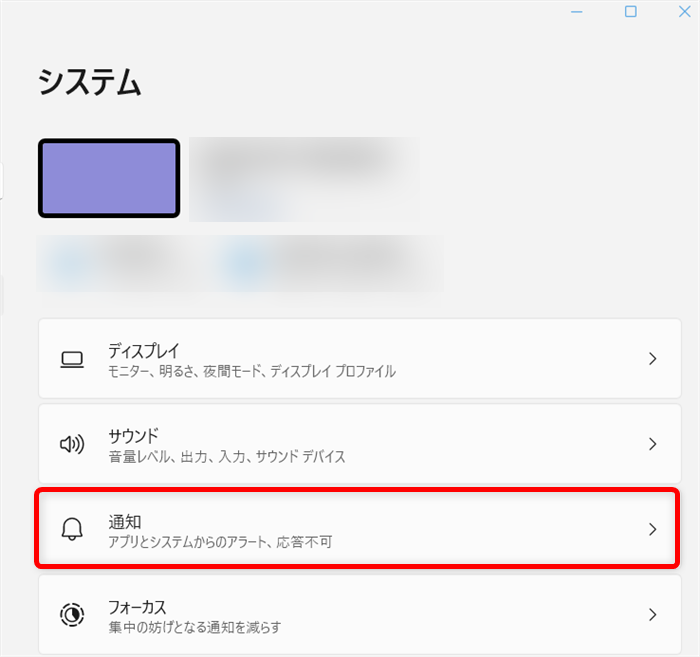 「システム」の中から「通知」を選択します。