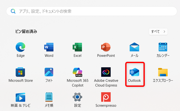 「ピン留め済み」の中から「Outlook(new)」を選択します。