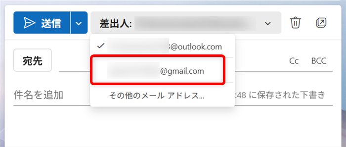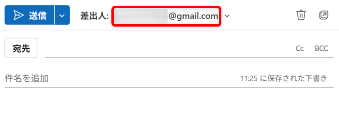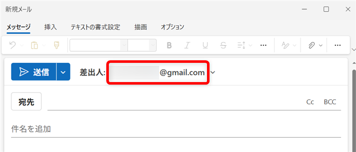 新規メールを開くと、差出人が変更されたことが確認できます。