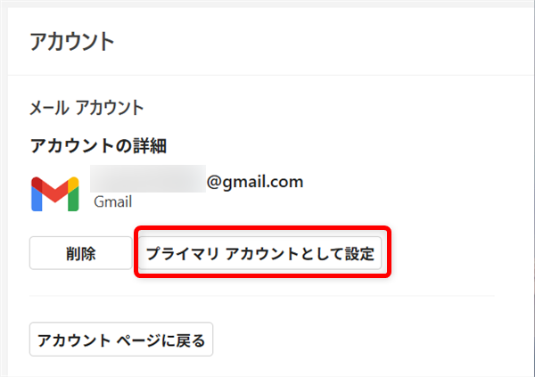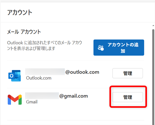 デフォルトにしたい差出人のメールアカウントの「管理」をクリックします。
