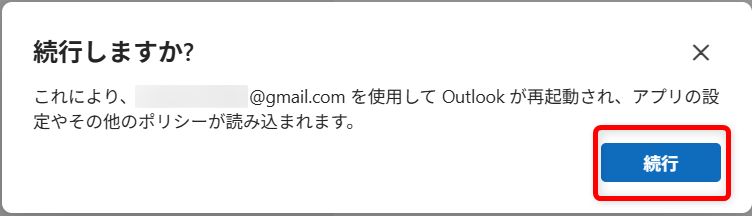 「続行しますか?」の画面が現れるので、内容を確認して「続行」をクリックします。