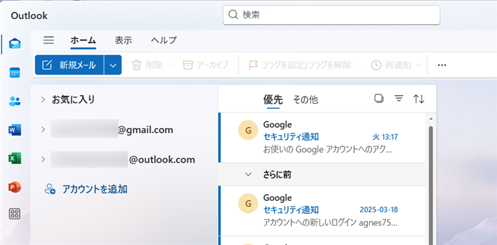 複数のアカウントを使い分けることができるので、仕事とプライベートを分けることができて便利です。