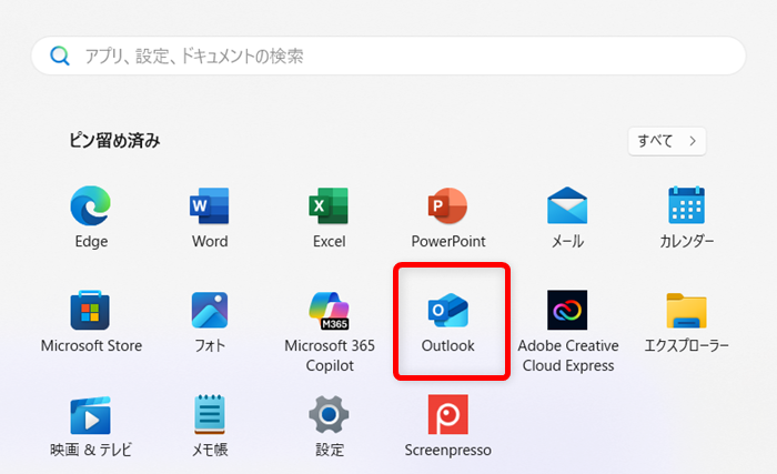 「ピン留め済み」の中から「Outlook(new)」を選択します。