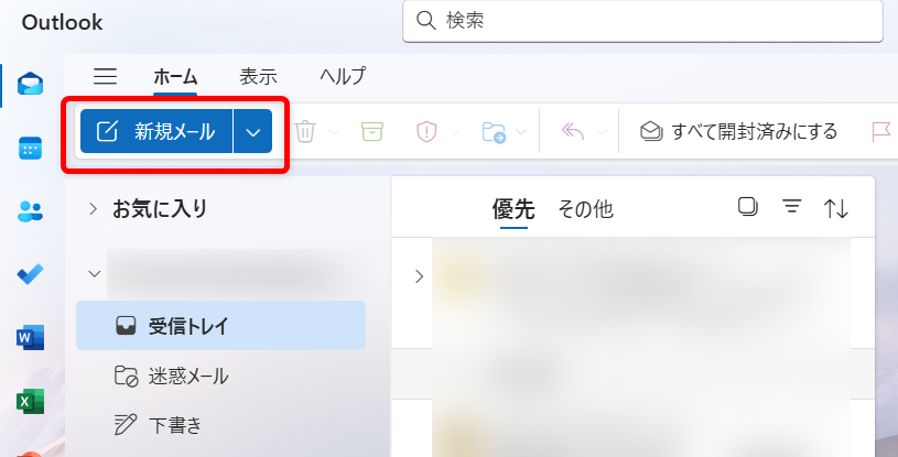 【Outlook for Windows】予約送信のやり方|オフライン送信の可否やバレる可能性も解説「新規メール」ボタンをクリックします。