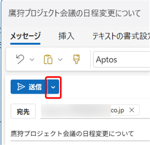 【Outlook for Windows】予約送信のやり方|オフライン送信の可否やバレる可能性も解説送信の右側にある「v」をクリックします。