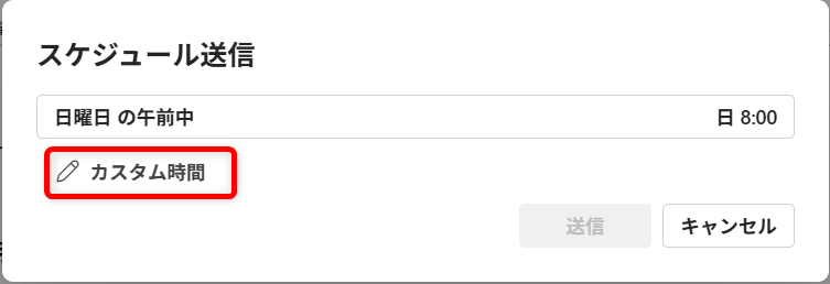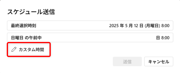 【Outlook for Windows】予約送信のやり方|オフライン送信の可否やバレる可能性も解説 鉛筆マークがついている「カスタム時間」を選択します。