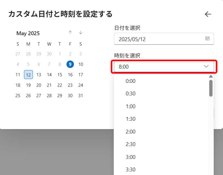【Outlook for Windows】予約送信のやり方|オフライン送信の可否やバレる可能性も解説時刻を選択します。