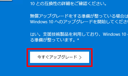 ※2019年7月1日(水)現在では、この方法でWindows10にアップグレードできないようになっています。