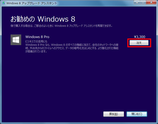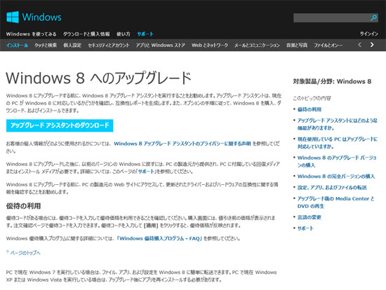 今回は、「Windows 8の購入(Windows 8にアップグレード)」をお伝えしました。