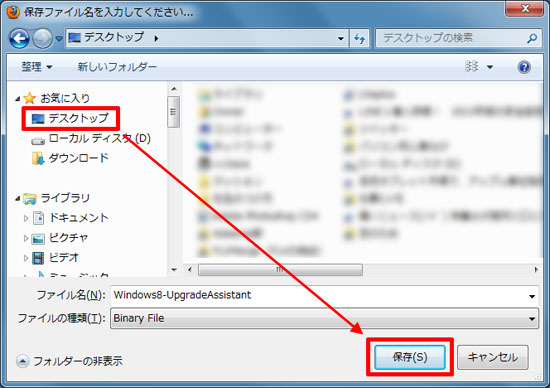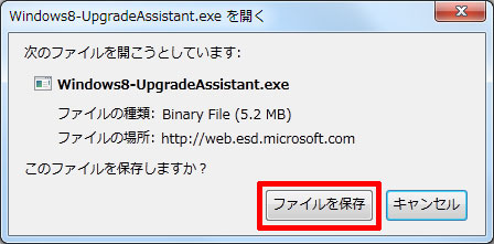 「Windows8-UpgradeAssistant.exeを開く」が表示されますので「ファイルを保存」をクリックします。