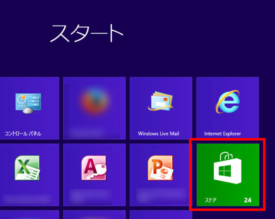 スタート画面の「ストア」をクリックします。
