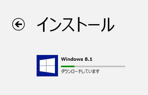 「インストール」画面で、Windows 8.1のダウンロード→インストールが行われます。